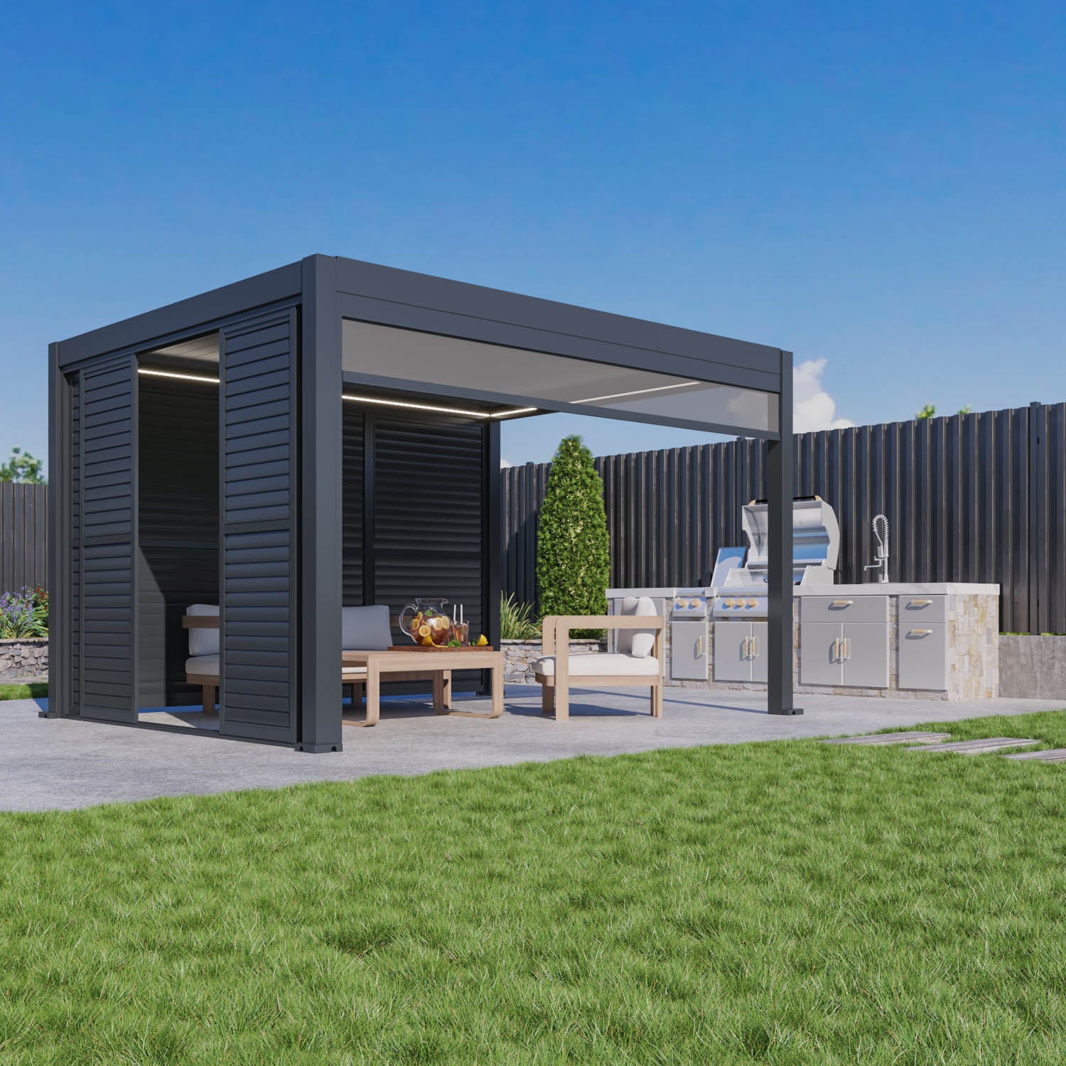 It is constructed to master the indoor-outdoor lifestyle, making it the definitive choice for patios, verandahs, and outdoor living rooms. The Santorini gives you the ability to dictate the terms, transforming a sun-drenched deck into a cool, shaded haven for lunch, or an open-air space into a sheltered retreat for evening entertaining.
