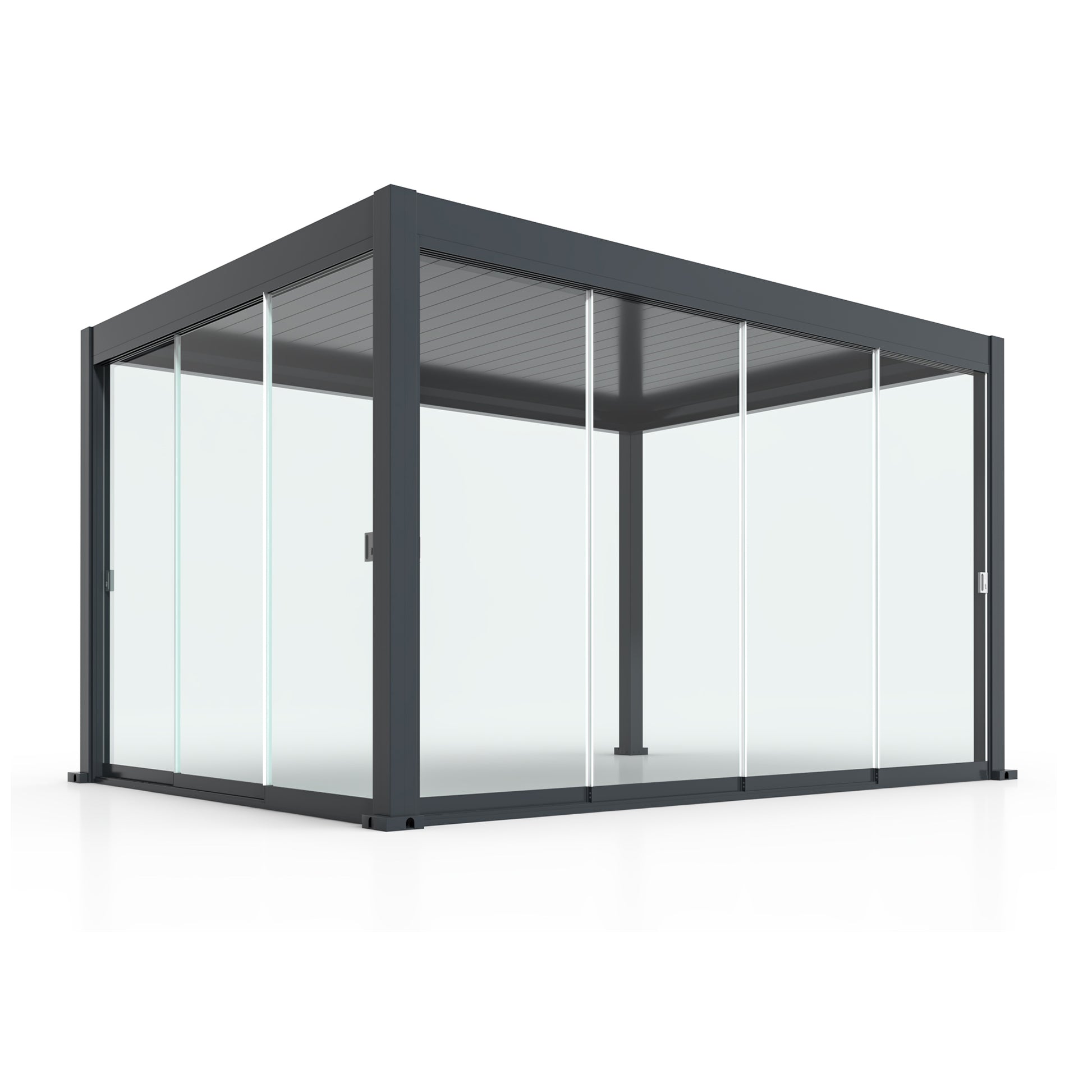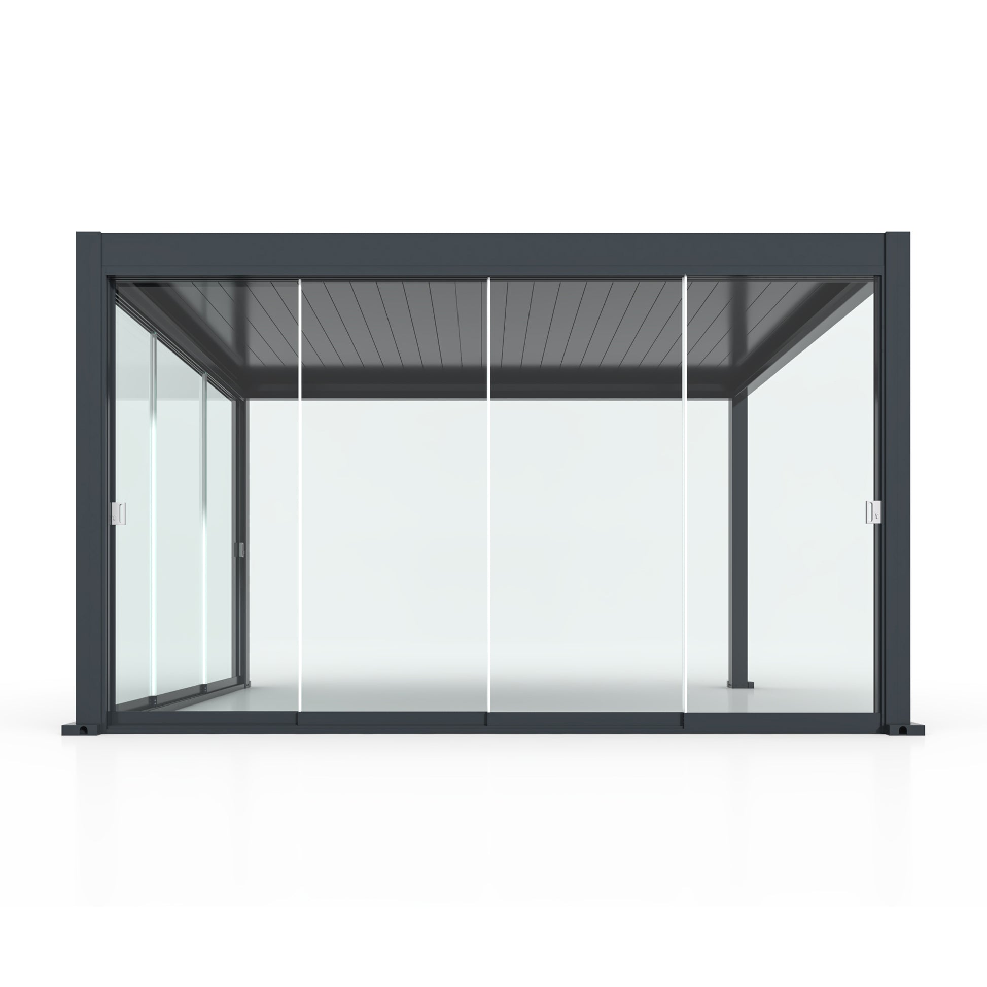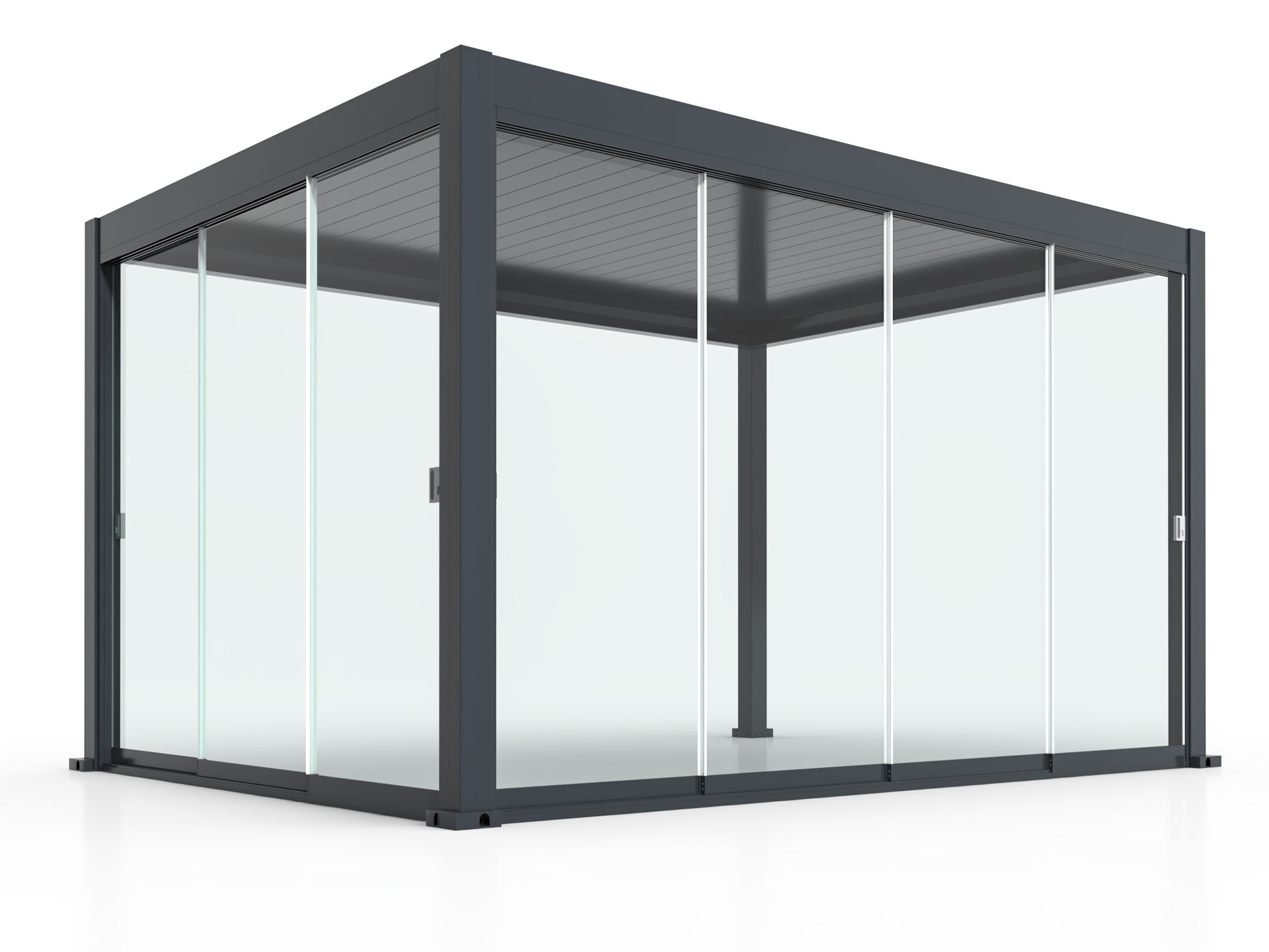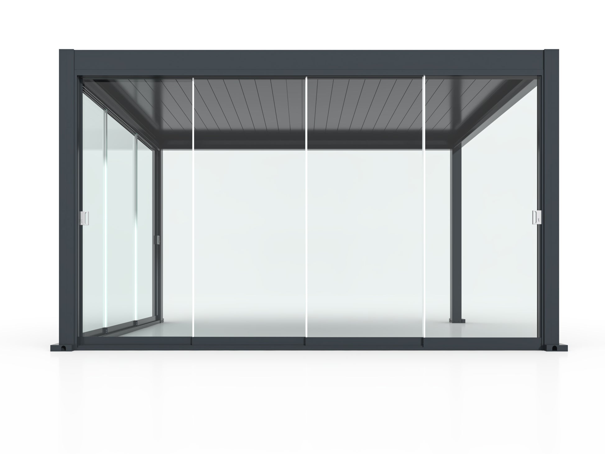 A premium door characterised by glass panels on precision track systems. Enclose your outdoor area against the weather while maintaining unobstructed views.