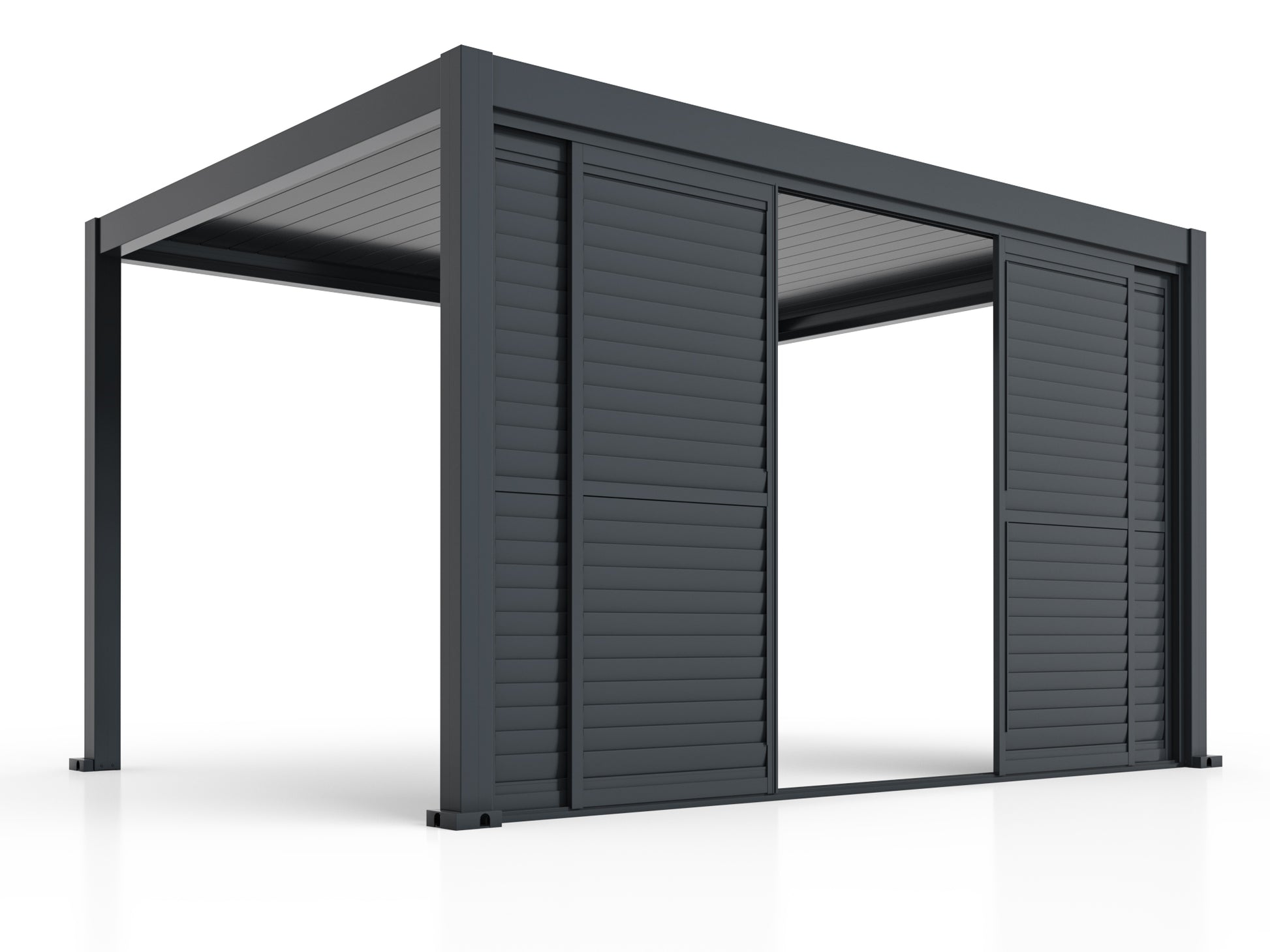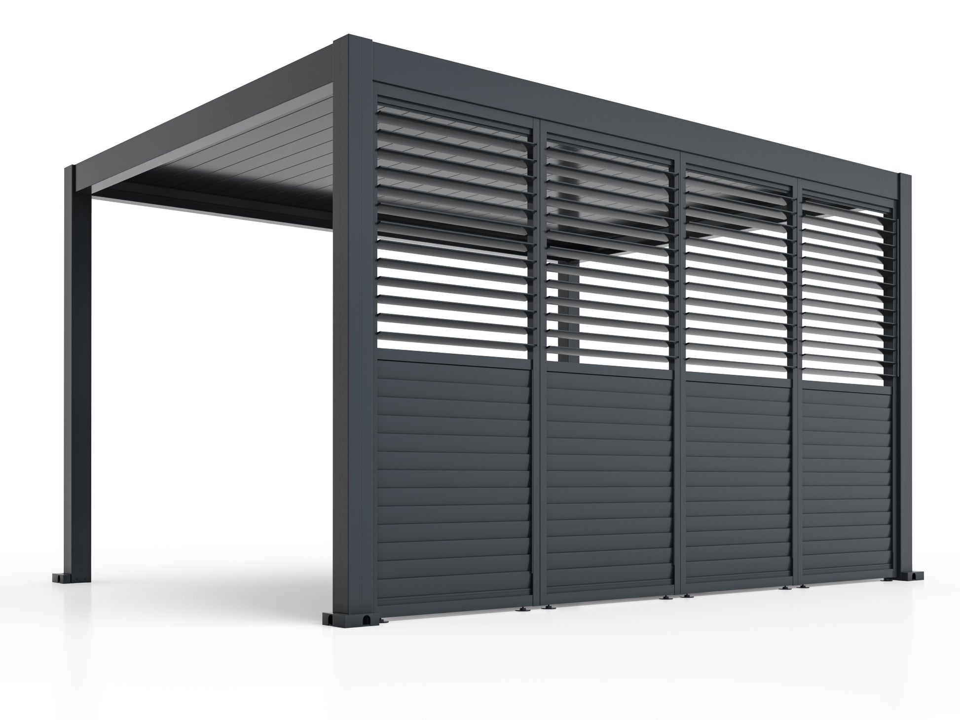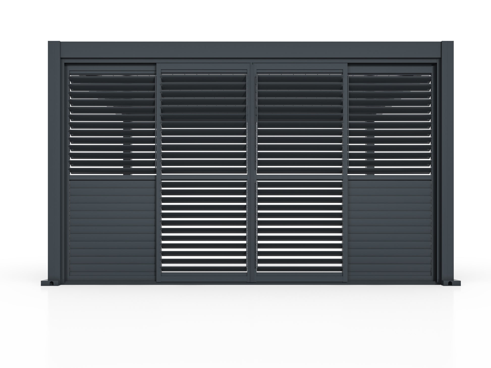 Louvred panels create permanent architectural screens for courtyards, balconies, and property boundaries. The panels require no operation or maintenance beyond periodic cleaning, and the angle provides year-round privacy screening.